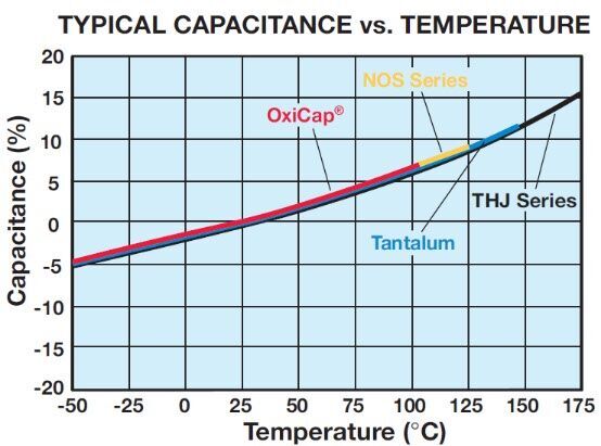 耗散系數(shù)隨溫度變化的典型曲線表演。這些地塊是鉭和OxiCap相同®電容器。對于最高限額,請參閱的評分表。