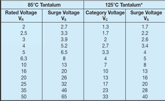 鉭電容的浪涌電壓